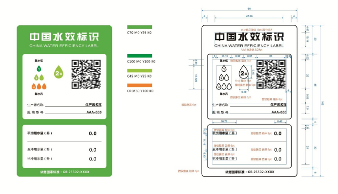 各类产品水效标识样式和内容会根据产品的实际情况,对标识尺寸、水效等级、标注内容、依据标准号等进行调整,在产品水效标识实施规则进行明确规定。